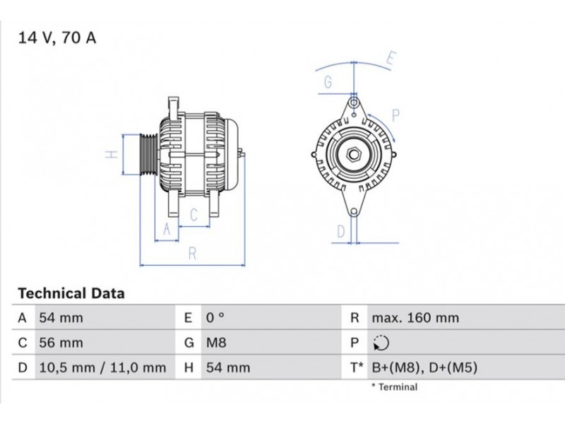 Criteries : Απόσταση από την τροχαλία ιμάντα προς τη γεννήτρια [mm] 54, Διάμ. τροχαλίας ιμάντα [mm] 54, Μήκος [mm] 160, Παλαιό εξάρτημα , Παραλλαγή γεννήτριας εξαιρουμ. αντλίας υποπίεσης, Πλήθος εγκοπών 5, προτεινόμενη επέκταση επισκευής Ιμάντας/ιμάντας poly-V, Ρεύμα φόρτισης γεννήτριας [A] 70, Τάση [V] 14, Τρόπος στερέωσης Διπλός μοχλός κέντρου περιστροφ, Τροχαλίες ιμάντων με πολλαπλή τροχαλία ιμάντα, Φορά περιστροφής Φορά περιστροφής προς τα δεξιά