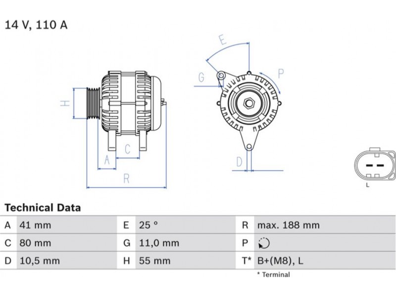 Criteries : ID παραλλαγής σύνδεσης PL87, Απόσταση από την τροχαλία ιμάντα προς τη γεννήτρια [mm] 40,8, Διάμ. τροχαλίας ιμάντα [mm] 55, Επαφή B+(M8), Επαφή L, Μήκος [mm] 188, Παλαιό εξάρτημα , Παραλλαγή γεννήτριας εξαιρουμ. αντλίας υποπίεσης, Πλήθος εγκοπών 7, προτεινόμενη επέκταση επισκευής Ιμάντας/ιμάντας poly-V, Ρεύμα φόρτισης γεννήτριας [A] 110, Τάση [V] 14, Τρόπος στερέωσης Διπλός μοχλός κέντρου περιστροφ, Τροχαλίες ιμάντων με πολλαπλή τροχαλία ιμάντα, Φορά περιστροφής Φορά περιστροφής προς τα δεξιά