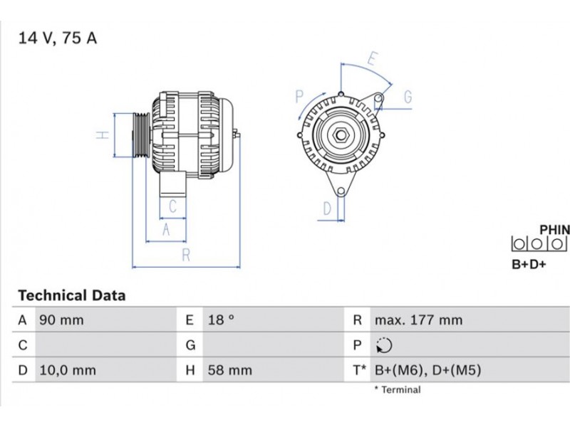 Criteries : ID παραλλαγής σύνδεσης 105, Απόσταση από την τροχαλία ιμάντα προς τη γεννήτρια [mm] 90, Διάμ. τροχαλίας ιμάντα [mm] 58, Επαφή B+(M6), Μήκος [mm] 177, Παλαιό εξάρτημα , Παραλλαγή γεννήτριας εξαιρουμ. αντλίας υποπίεσης, Πλήθος εγκοπών 4, προτεινόμενη επέκταση επισκευής Ιμάντας/ιμάντας poly-V, Ρεύμα φόρτισης γεννήτριας [A] 75, Τάση [V] 14, Τρόπος στερέωσης Μονός μοχλός κέντρου περιστροφή, Τροχαλίες ιμάντων με πολλαπλή τροχαλία ιμάντα, Φορά περιστροφής Φορά περιστροφής προς τα δεξιά
