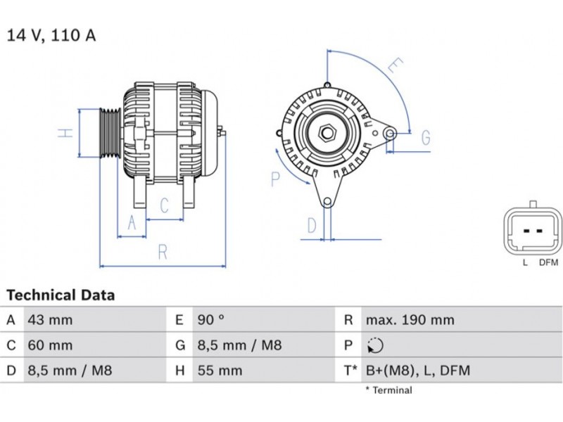 Criteries : ID παραλλαγής σύνδεσης PL72, Απόσταση από την τροχαλία ιμάντα προς τη γεννήτρια [mm] 42,5, Διάμ. τροχαλίας ιμάντα [mm] 54,5, Επαφή B1+(M8), Επαφή DFM, Επαφή L, Μήκος [mm] 190, Παλαιό εξάρτημα , Παραλλαγή γεννήτριας εξαιρουμ. αντλίας υποπίεσης, Πλήθος εγκοπών 5, προτεινόμενη επέκταση επισκευής Ιμάντας/ιμάντας poly-V, Ρεύμα φόρτισης γεννήτριας [A] 110, Τάση [V] 14, Τρόπος στερέωσης Διπλός μοχλός κέντρου περιστροφ, Τροχαλίες ιμάντων με τροχαλία ιμάντα ελεύθ. κίνησης, Φορά περιστροφής Φορά περιστροφής προς τα δεξιά