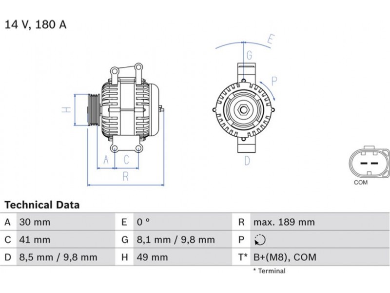 Criteries : ID παραλλαγής σύνδεσης PL86, Απόσταση από την τροχαλία ιμάντα προς τη γεννήτρια [mm] 30, Διάμ. τροχαλίας ιμάντα [mm] 49, Επαφή B+(M8),COM, Μήκος [mm] 189, Παλαιό εξάρτημα , Παραλλαγή γεννήτριας εξαιρουμ. αντλίας υποπίεσης, Πλήθος εγκοπών 6, προτεινόμενη επέκταση επισκευής Ιμάντας/ιμάντας poly-V, Ρεύμα φόρτισης γεννήτριας [A] 180, Τάση [V] 14, Τρόπος στερέωσης Άμεση στερέωση, Τροχαλίες ιμάντων με τροχαλία ιμάντα ελεύθ. κίνησης, Φορά περιστροφής Φορά περιστροφής προς τα δεξιά
