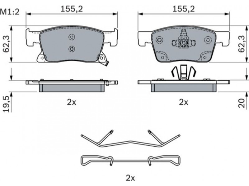 Criteries : Αριθμός WVA 22345, Δώστε προσοχή στα τεχνικά στοιχεία , Επαφή προειδοποίησης φθοράς με ενσωματωμένο αισθητήρα φθοράς, Πάχος 1 [mm] 19,5, Πάχος 2 [mm] 19,8, Πλάτος [mm] 155,2, Πλήθος ελατηρίων 2, Στοιχεία ελέγχου ECE-R90, Υλικό Low-Metallic, Υψος [mm] 62,3