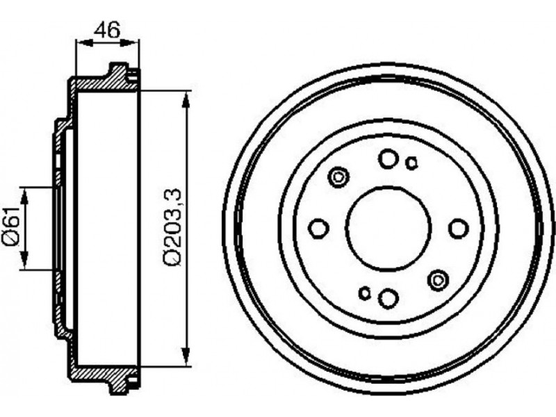 Criteries : Αριθμός οπών 4, Διάμετρος κέντρωσης [mm] 61, Διάμετρος κύκλου οπής [mm] 100, Εξωτερική διάμετρος ταμπούρου [mm] 243, Εσωτερική διάμετρος ταμπούρου [mm] 203, Πλευρά τοποθέτησης Πίσω άξονας, Ύψος ταμπούρου φρένου εσωτερικά [mm] 45, Ύψος ταμπούρου φρένου συνολικά [mm] 62,5