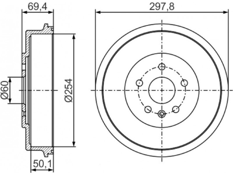 Criteries : Αριθμός οπών 5, Διάμετρος κέντρωσης [mm] 60, Διάμετρος κύκλου οπής [mm] 105, Εξωτερική διάμετρος ταμπούρου [mm] 297,8, Εσωτερική διάμετρος ταμπούρου [mm] 254, Πλευρά τοποθέτησης Πίσω άξονας, Ύψος ταμπούρου φρένου εσωτερικά [mm] 50, Ύψος ταμπούρου φρένου συνολικά [mm] 69,4