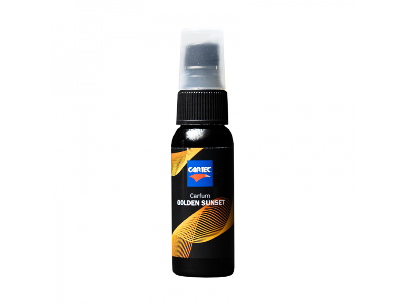 Το Carfum Golden Sunset είναι ένα πολυτελές άρωμα αυτοκινήτου που εμπλουτίζει τον αέρα με το φρέσκο άρωμα πορτοκαλιού και λεμονιού. Το άρωμα των τριαντάφυλλων προσθέτει ένα διακριτικό λουλουδάτο άρωμα.