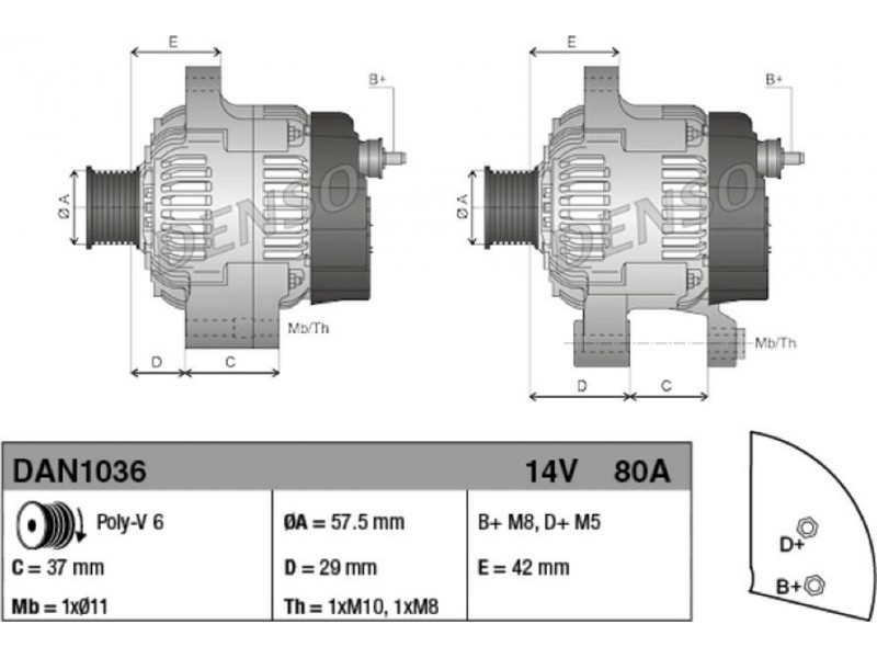 DENSO ΔΥΝΑΜΟ PEUGEOT DENSO DAN1036 - Γεννήτρια