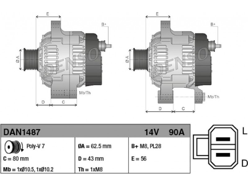 DENSO ΔΥΝΑΜΟ ISUZU DENSO DAN1487 - Γεννήτρια