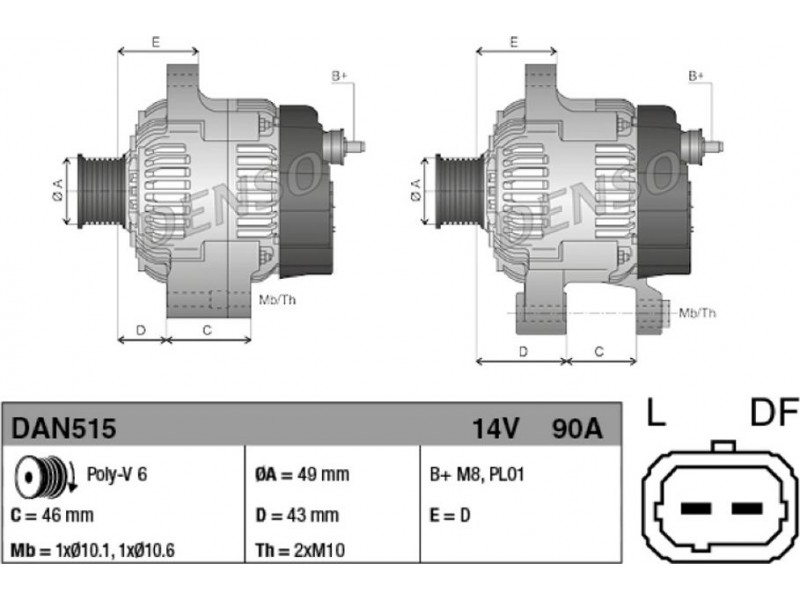DENSO ΔΥΝΑΜΟ PEUGEOT DENSO DAN515 - Γεννήτρια