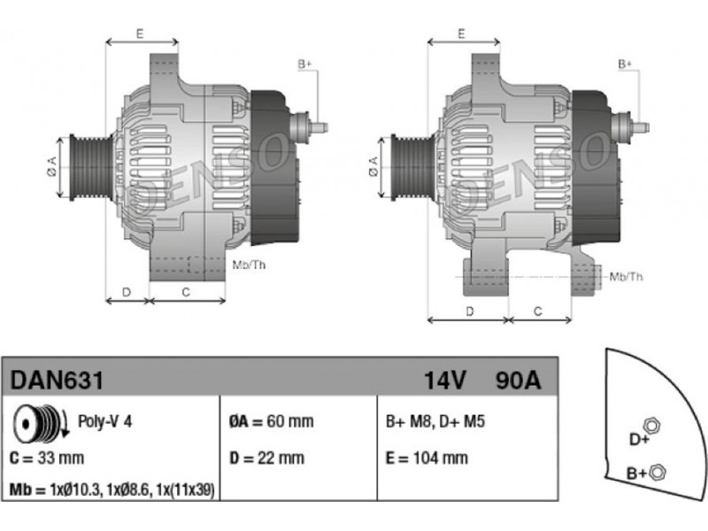 DENSO ΔΥΝΑΜΟ FIAT DENSO DAN631 - Γεννήτρια