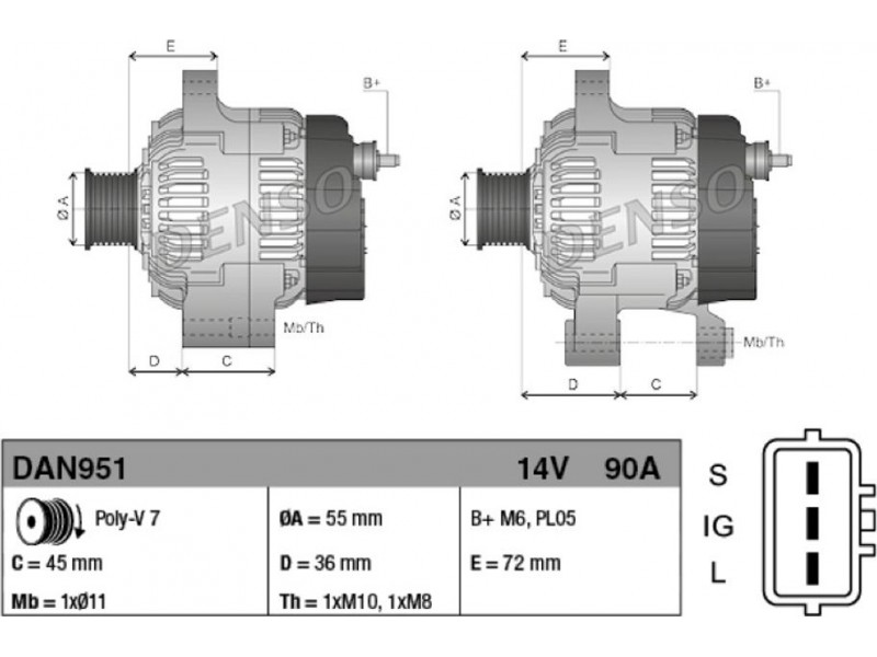 DAN951-ΔΥΝΑΜΟ TOYOTA RAV 4 II(CLA2..) 2.0 VVTI 00-05 DENSO DAN951 - Γεννήτρια