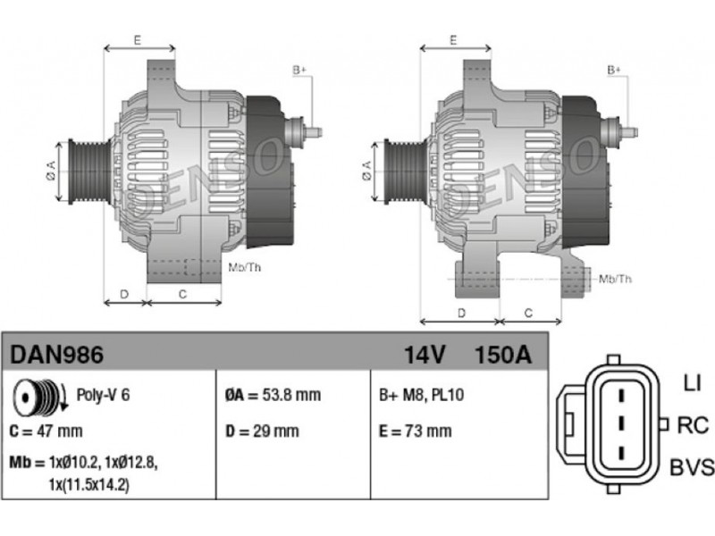 DENSO ΔΥΝΑΜΟ LAND ROVER DENSO DAN986 - Γεννήτρια