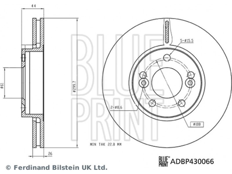 Criteries : Βάρος [kg] 8,9, Διάμετρος κέντρωσης [mm] 61, Διάμετρος κύκλου οπής [mm] 108, Δώστε προσοχή στις πληροφορίες για το σέρβις , Ελάχιστο πάχος [mm] 22,8, Εξωτερική διάμετρος [mm] 300, Επιφάνεια με επίστρωση, Ζάντα, αριθμός οπών 5, Πάχος [mm] 44, Πάχος δισκόπλακας [mm] 26, Πλευρά τοποθέτησης μπροστινός άξονας, Πλήθος των οπών στερέωσης 2, Τύπος δισκόφρενων εσωτερικά αεριζόμενο