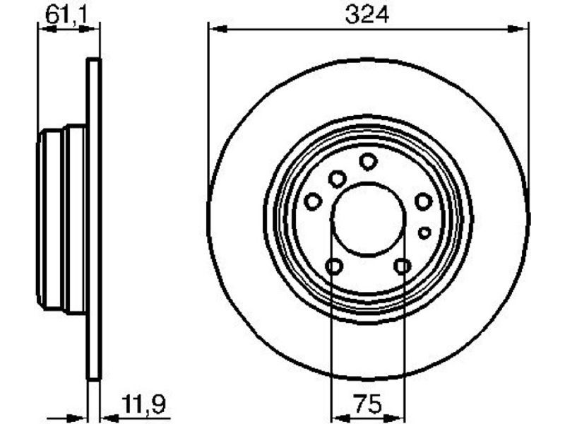 Criteries : Αριθμός οπών 5, Διάμετρος κέντρωσης [mm] 75, Διάμετρος κύκλου οπής [mm] 120, Διάμετρος οπής έως [mm] 14,7, Ελάχιστο πάχος [mm] 10,4, Εξωτερική διάμετρος [mm] 324, Επεξεργασία υψηλής ανθράκωσης, Επιφάνεια λαδωμένο, Πάχος δισκόπλακας [mm] 12, πληρεί τις προδιαγραφές ECE ECE-R90, Συμπληρωματικό προϊόν/ πληροφορίες 2 Με βίδες, Τύπος δισκόφρενων πλήρες, Υψος [mm] 61,1
