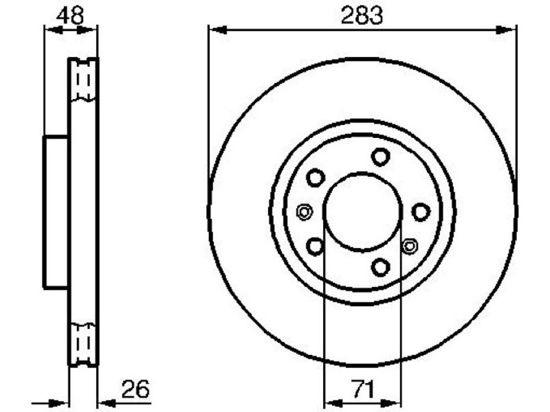 Criteries : Αριθμός οπών 5, Διάμετρος κέντρωσης [mm] 71,02, Διάμετρος κύκλου οπής [mm] 108, Διάμετρος οπής έως [mm] 13, Ελάχιστο πάχος [mm] 24, Εξωτερική διάμετρος [mm] 283, Επιφάνεια λαδωμένο, Πάχος δισκόπλακας [mm] 26, πληρεί τις προδιαγραφές ECE ECE-R90, Συμπληρωματικό προϊόν/ πληροφορίες 2 Με βίδες, Τύπος δισκόφρενων αεριζόμενο, Υψος [mm] 48