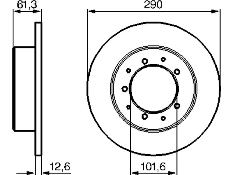 Criteries : Αριθμός οπών 5, Διάμετρος κέντρωσης [mm] 101,7, Διάμετρος κύκλου οπής [mm] 136, Διάμετρος οπής έως [mm] 10,3, Ελάχιστο πάχος [mm] 11,7, Εξωτερική διάμετρος [mm] 289,6, Επιφάνεια λαδωμένο, Πάχος δισκόπλακας [mm] 12,6, πληρεί τις προδιαγραφές ECE ECE-R90, Τύπος δισκόφρενων πλήρες, Υψος [mm] 61,2