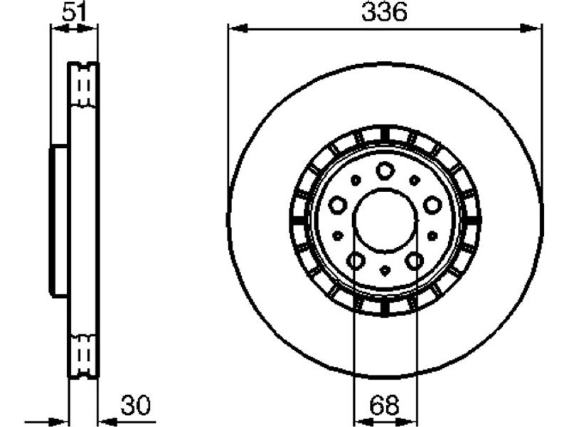 Criteries : Αριθμός οπών 5, Διάμετρος κέντρωσης [mm] 68, Διάμετρος κύκλου οπής [mm] 108, Διάμετρος οπής έως [mm] 16,5, Ελάχιστο πάχος [mm] 27, Εξωτερική διάμετρος [mm] 336, Επεξεργασία υψηλής ανθράκωσης, Επιφάνεια με επίστρωση, Πάχος δισκόπλακας [mm] 30, πληρεί τις προδιαγραφές ECE ECE-R90, Τύπος δισκόφρενων αεριζόμενο, Υψος [mm] 51,2