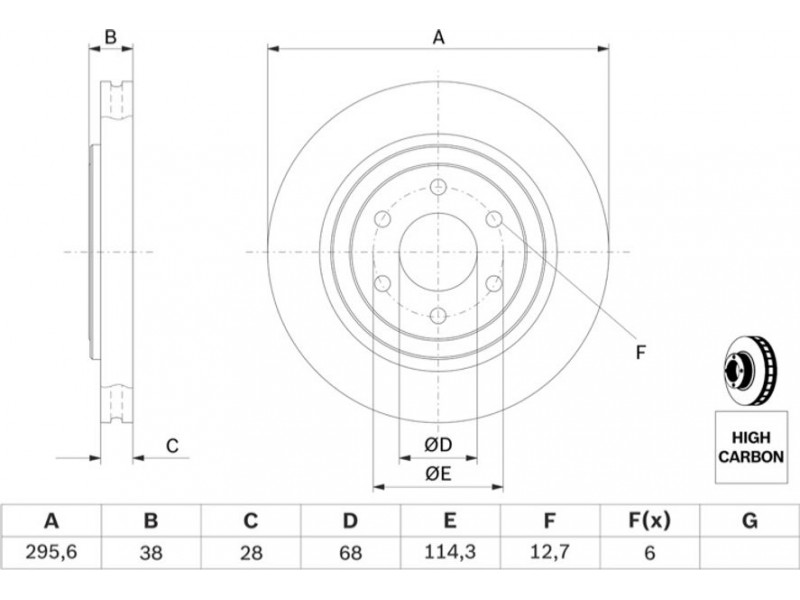 Criteries : Αριθμός οπών 6, Διάμετρος κέντρωσης [mm] 68, Διάμετρος κύκλου οπής [mm] 114,3, Διάμετρος οπής έως [mm] 12,9, Ελάχιστο πάχος [mm] 26, Εξωτερική διάμετρος [mm] 296, Επεξεργασία υψηλής ανθράκωσης, Επιφάνεια λαδωμένο, Πάχος δισκόπλακας [mm] 28, πληρεί τις προδιαγραφές ECE ECE-R90, Τύπος δισκόφρενων αεριζόμενο, Υψος [mm] 38,2