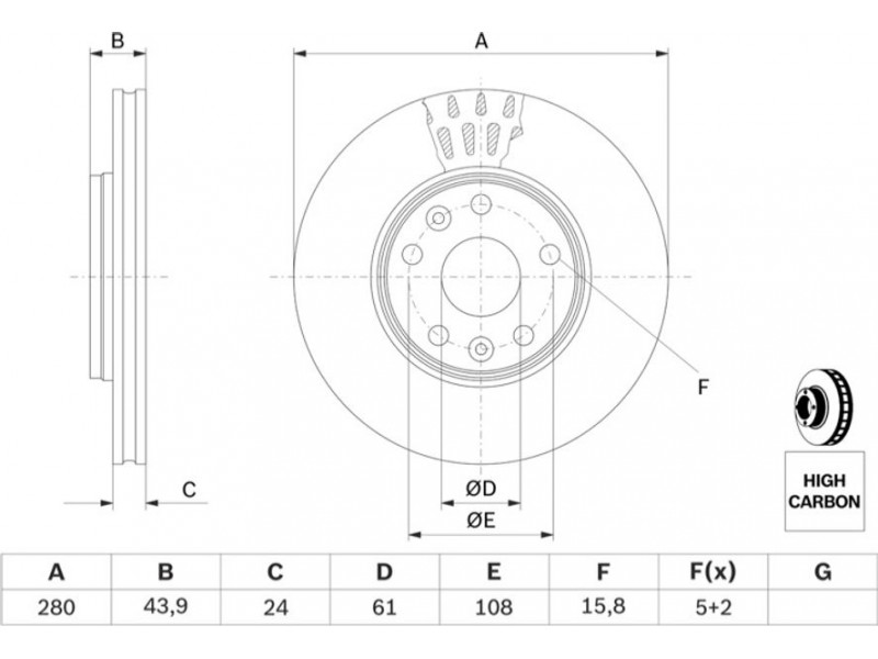 Criteries : Αριθμός οπών 5, Διάμετρος κέντρωσης [mm] 61, Διάμετρος κύκλου οπής [mm] 107,95, Διάμετρος οπής έως [mm] 15,8, Ελάχιστο πάχος [mm] 21,8, Εξωτερική διάμετρος [mm] 280, Επεξεργασία υψηλής ανθράκωσης, Επιφάνεια λαδωμένο, Πάχος δισκόπλακας [mm] 24, πληρεί τις προδιαγραφές ECE ECE-R90, Τύπος δισκόφρενων αεριζόμενο, Υψος [mm] 44