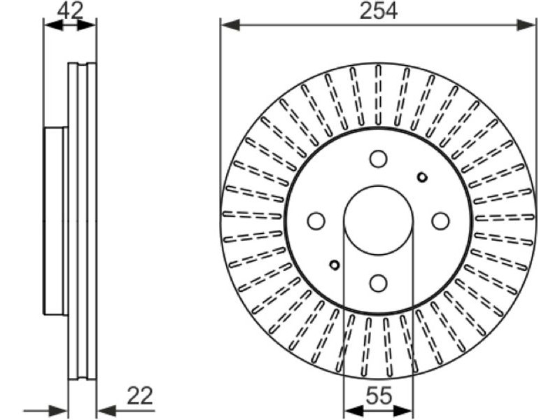Criteries : Αριθμός οπών 4, Διάμετρος κέντρωσης [mm] 55, Διάμετρος κύκλου οπής [mm] 100, Διάμετρος οπής έως [mm] 13,1, Ελάχιστο πάχος [mm] 20, Εξωτερική διάμετρος [mm] 254, Επιφάνεια λαδωμένο, Πάχος δισκόπλακας [mm] 22, πληρεί τις προδιαγραφές ECE ECE-R90, Τύπος δισκόφρενων αεριζόμενο, Υψος [mm] 42