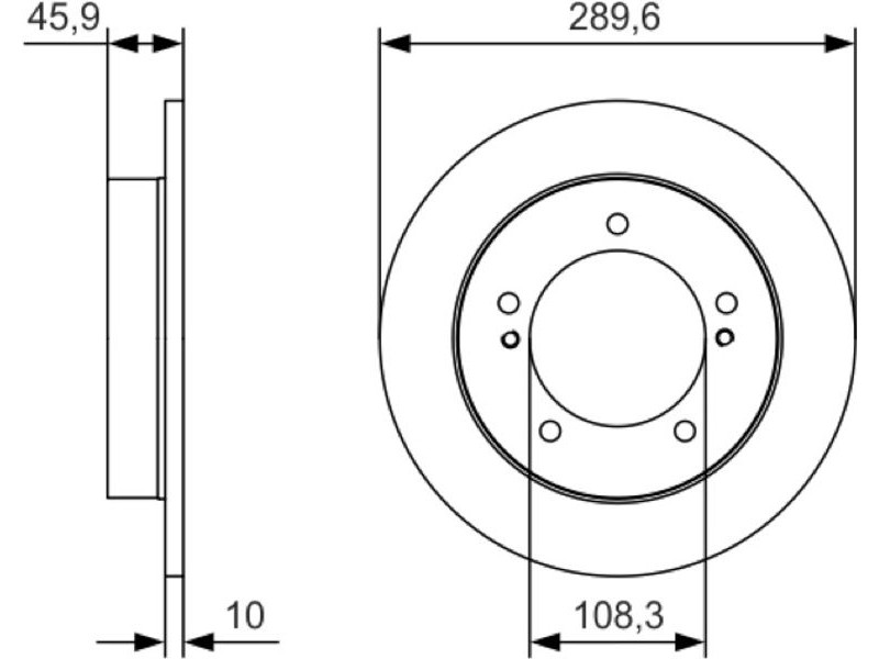 Criteries : Αριθμός οπών 5, Διάμετρος κέντρωσης [mm] 108,3, Διάμετρος κύκλου οπής [mm] 139,7, Διάμετρος οπής έως [mm] 12,8, Ελάχιστο πάχος [mm] 8, Εξωτερική διάμετρος [mm] 289,6, Επιφάνεια λαδωμένο, Πάχος δισκόπλακας [mm] 10, Τύπος δισκόφρενων πλήρες, Υψος [mm] 45,9