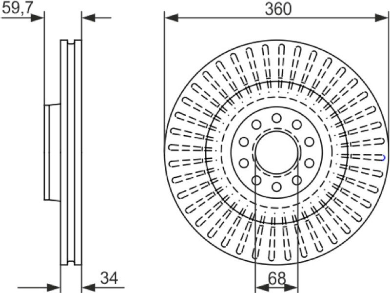 Criteries : Αριθμός οπών 5, Διάμετρος κέντρωσης [mm] 68, Διάμετρος κύκλου οπής [mm] 112, Διάμετρος οπής έως [mm] 15,3, Ελάχιστο πάχος [mm] 31, Εξωτερική διάμετρος [mm] 360, Επεξεργασία υψηλής ανθράκωσης, Επιφάνεια με επίστρωση, Πάχος δισκόπλακας [mm] 34, πληρεί τις προδιαγραφές ECE ECE-R90, Τύπος δισκόφρενων αεριζόμενο, Υψος [mm] 59,4