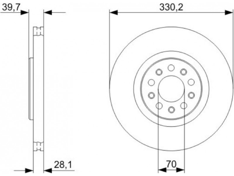 Criteries : Αριθμός οπών 5, Διάμετρος κέντρωσης [mm] 70, Διάμετρος κύκλου οπής [mm] 110, Διάμετρος οπής έως [mm] 16,6, Ελάχιστο πάχος [mm] 26, Εξωτερική διάμετρος [mm] 330, Επιφάνεια με επίστρωση, Πάχος δισκόπλακας [mm] 28, πληρεί τις προδιαγραφές ECE ECE-R90, Τύπος δισκόφρενων αεριζόμενο, Υψος [mm] 39,7