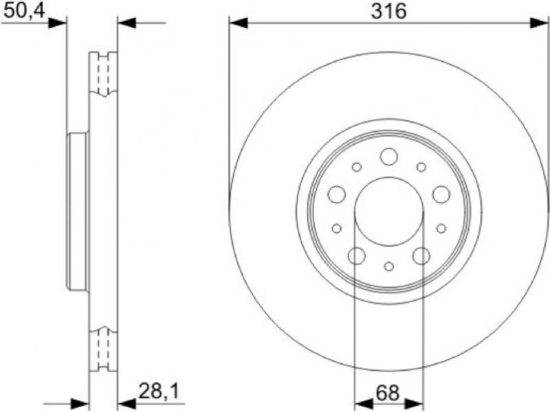 Criteries : Αριθμός οπών 5, Διάμετρος κέντρωσης [mm] 68, Διάμετρος κύκλου οπής [mm] 108, Διάμετρος οπής έως [mm] 16,7, Ελάχιστο πάχος [mm] 25, Εξωτερική διάμετρος [mm] 316, Επεξεργασία υψηλής ανθράκωσης, Επιφάνεια με επίστρωση, Πάχος δισκόπλακας [mm] 28, πληρεί τις προδιαγραφές ECE ECE-R90, Συμπληρωματικό προϊόν/ πληροφορίες 2 Με βίδες, Τύπος δισκόφρενων αεριζόμενο, Υψος [mm] 50,2