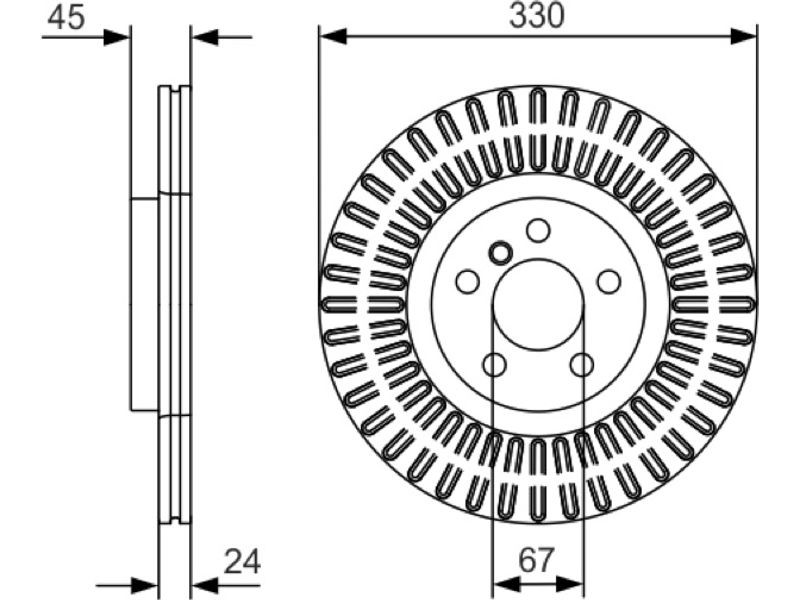 Criteries : Αριθμός οπών 5, Διάμετρος κέντρωσης [mm] 67, Διάμετρος κύκλου οπής [mm] 112, Διάμετρος οπής έως [mm] 16,8, Ελάχιστο πάχος [mm] 22,4, Εξωτερική διάμετρος [mm] 330, Επεξεργασία υψηλής ανθράκωσης, Επιφάνεια με επίστρωση, Πάχος δισκόπλακας [mm] 24, πληρεί τις προδιαγραφές ECE ECE-R90, Τύπος δισκόφρενων αεριζόμενο, Τύπος δισκόφρενων εσωτερικά αεριζόμενο, Υψος [mm] 45,2