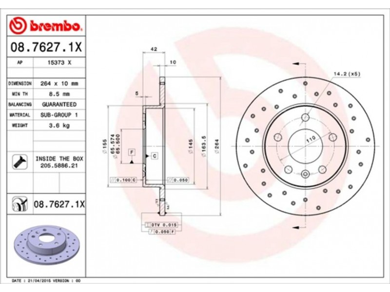 08.7627.1X XTRA ΔΙΣΚ/ΚΕΣ ΟΠ.ASTRA 1,8/ZAFIRA BREMBO 08.7627.1X - Δισκόπλακα