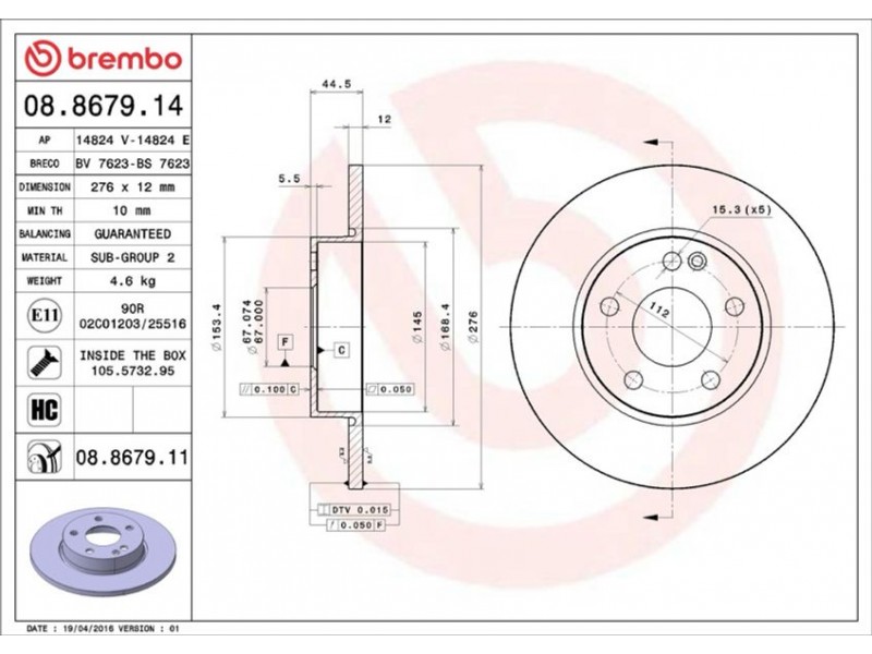 08.8679.11 ΔΙΣΚ/ΚΕΣ ΕΜ.MERC.A150 (W169) BREMBO 08.8679.11 - Δισκόπλακα