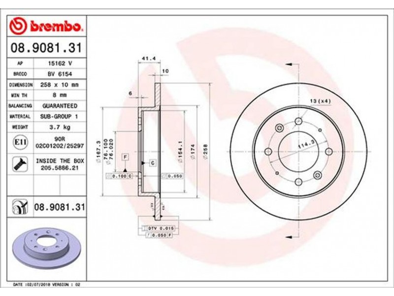 08908131 ΔΙΣΚ.ΦΡΕΝ. ΟΠΙΣΘ.KIA CERATO 04- BREMBO 08.9081.31 - Δισκόπλακα