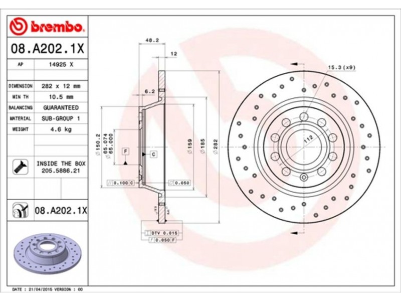 08.A202.1X XTRA ΔΙΣΚ/ΚΕΣ ΟΠ.A3/ALTEA/GOLF V BREMBO 08.A202.1X - Δισκόπλακα