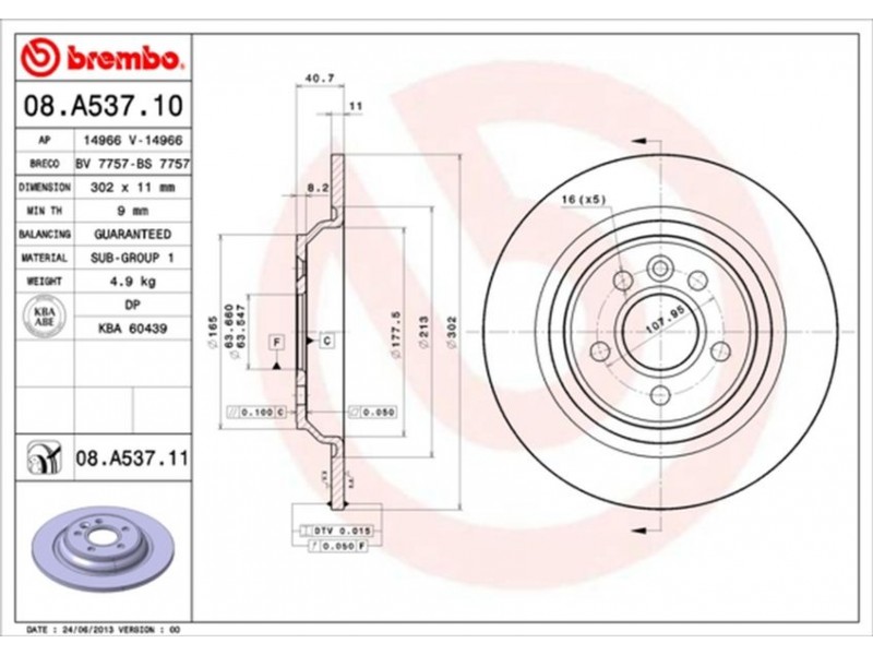08.A537.11 ΔΙΣΚ/ΚΕΣ ΟΠ.VOLVO S60 08- BREMBO 08.A537.11 - Δισκόπλακα