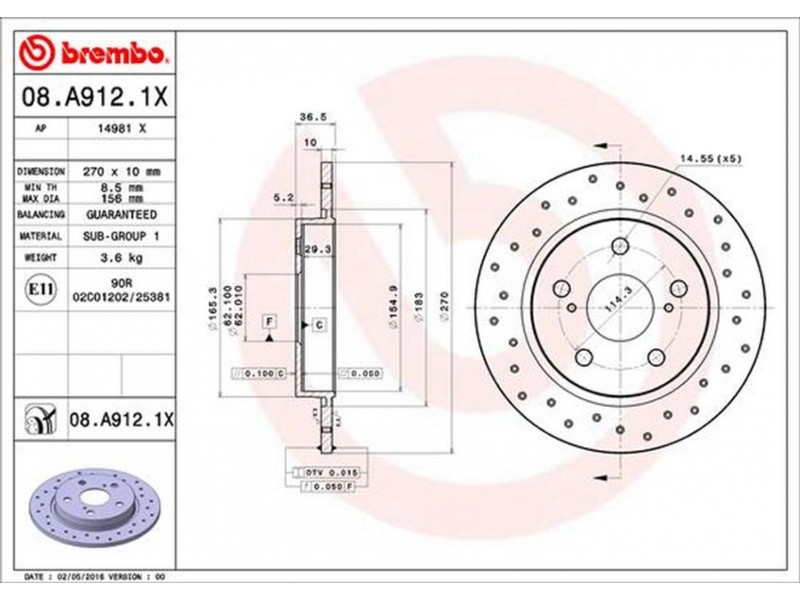 08.A912.1X XTRA ΔΙΣΚ/ΚΕΣ ΟΠ.AURIS BREMBO 08.A912.1X - Δισκόπλακα