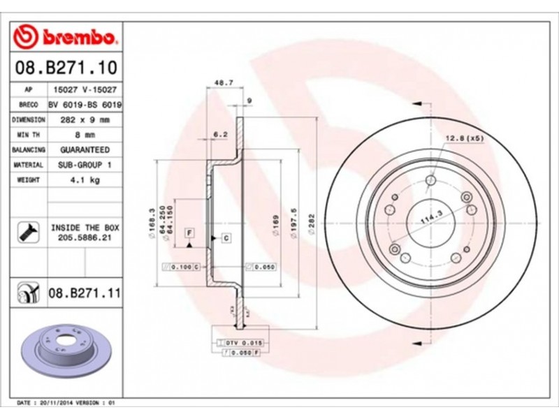 08.B271.11 ΔΙΣΚ/ΚΕΣ ΟΠ.ACCORD 08-15 BREMBO 08.B271.11 - Δισκόπλακα