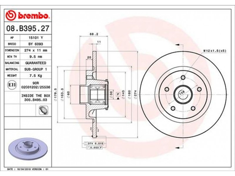 08.B395.27 ΔΙΣΚ.ΟΠΙΣΘ.MB CITAN(415) ΜΕ ΡΟΥΛΜΑΝ (274Χ11) BREMBO 08.B395.27 - Δισκόπλακα
