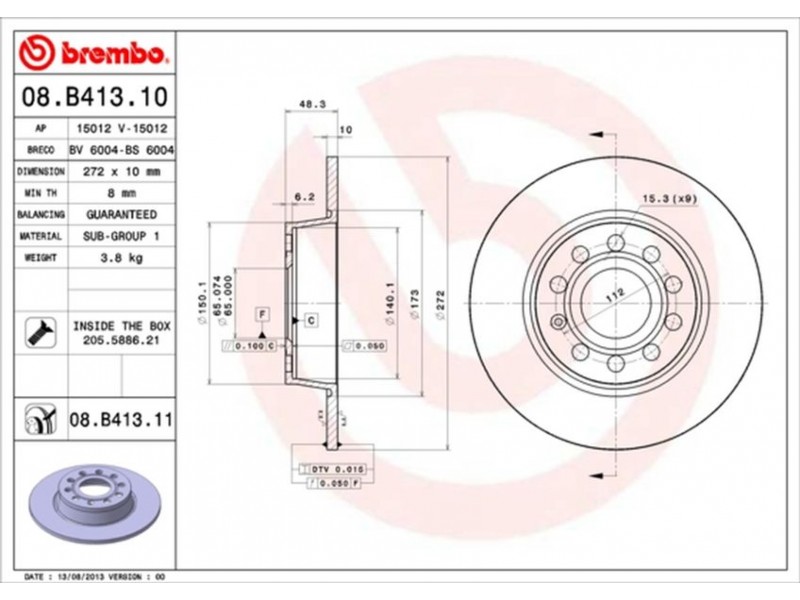08.B413.11 ΔΙΣΚ/ΚΕΣ ΟΠ.VW GOLF VI/VII (272MM) BREMBO 08.B413.11 - Δισκόπλακα