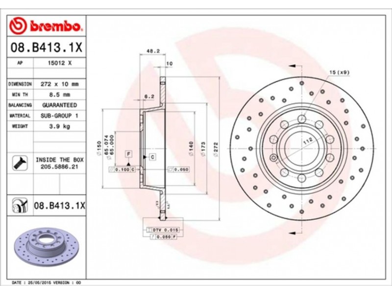 08.B413.1X ΔΙΣΚΟΙ ΟΠΙΣΘ.XTRA A3(8V),OCTAVIA II, GOLF VI/VII BREMBO 08.B413.1X - Δισκόπλακα