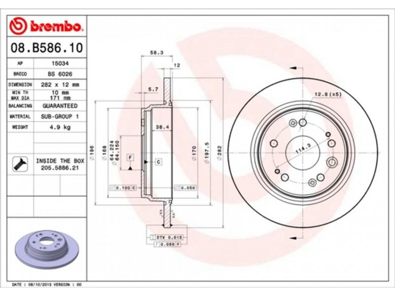 08.B586.10 ΔΙΣΚ/ΚΕΣ ΟΠ.HONDA FR-V 04- BREMBO 08.B586.10 - Δισκόπλακα