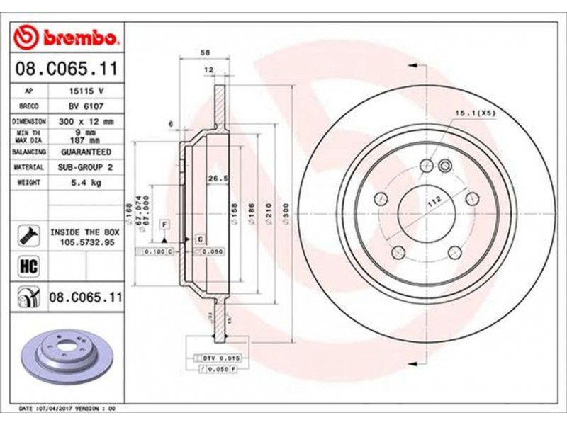 08.C065.11 ΔΙΣΚ.ΟΠΙΣΘ.MB VITO 14- (W447) (300Χ12) BREMBO 08.C065.11 - Δισκόπλακα
