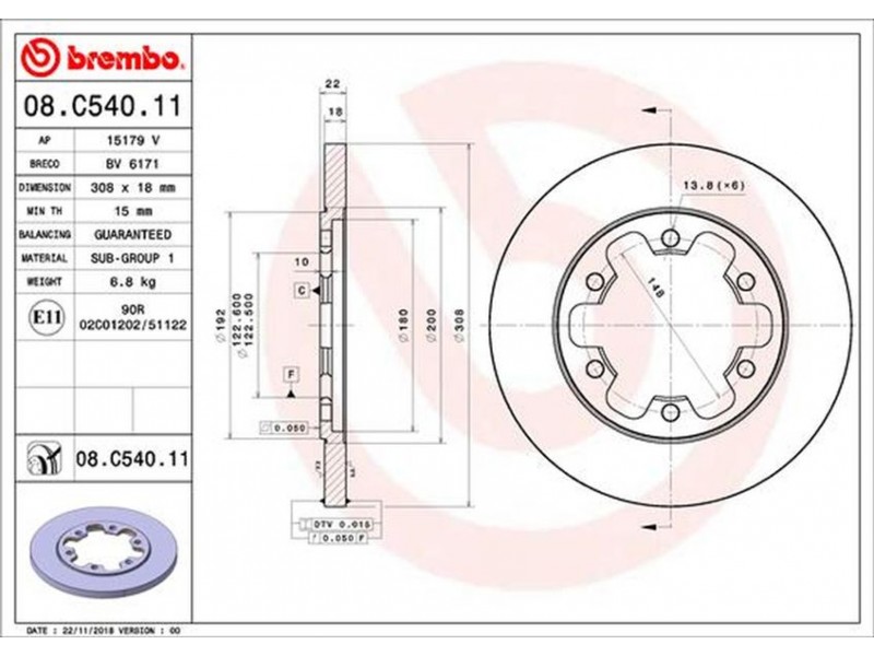 Criteries : Αριθμός οπών 6, Διάμετρος κέντρωσης [mm] 123, Ελάχιστο πάχος [mm] 15, Εξωτερική διάμετρος [mm] 308, Επιφάνεια με επίστρωση, Πάχος δισκόπλακας [mm] 18, Τύπος δισκόφρενων πλήρες, Υψος [mm] 22
