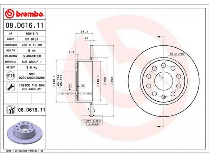 08.D616.11 ΔΙΣΚΟΙ ΟΠΙΣΘ. SKODA OCTAVIA III 11/12-(253MM) BREMBO 08.D616.11 - Δισκόπλακα