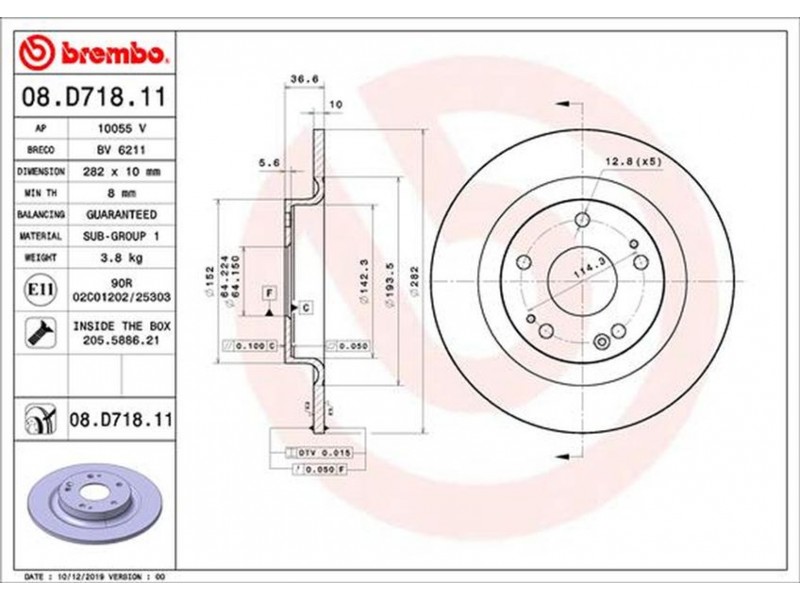 08.D718.11 ΔΙΣΚΟΙ ΟΠΙΣΘ. HONDA CIVIC X 15-(282mm) BREMBO 08.D718.11 - Δισκόπλακα