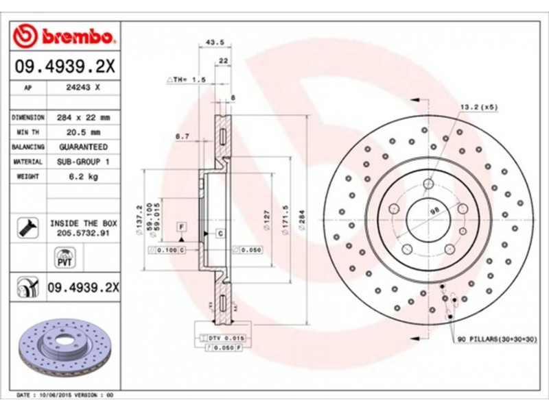 09.4939.2X XTRA ΔΙΣΚ/ΚΕΣ EM. A147/156 01-/GTV BREMBO 09.4939.2X - Δισκόπλακα