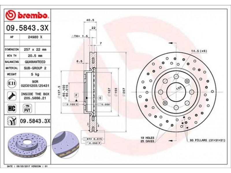 09.5843.3X XTRA ΔΙΣΚ/ΚΕΣ ΕΜ.GRANDE PUNTO BREMBO 09.5843.3X - Δισκόπλακα