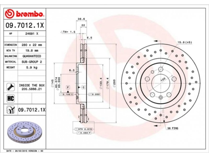 09.7012.1X ΔΙΣΚ/ΚΕΣ ΕΜΠ.ΤΡΥΠ.GOLF IV A3 1.8 BREMBO 09.7012.1X - Δισκόπλακα