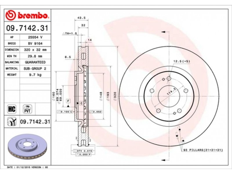 Criteries : Αριθμός οπών 5, Διάμετρος κέντρωσης [mm] 69, Ελάχιστο πάχος [mm] 29,8, Εξωτερική διάμετρος [mm] 320, Επεξεργασία υψηλής ανθράκωσης, Επιφάνεια με επίστρωση, Πάχος δισκόπλακας [mm] 32, Τύπος δισκόφρενων εσωτερικά αεριζόμενο, Υψος [mm] 44