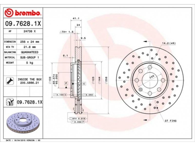 09.7628.1X ΔΙΣΚ/ΚΕΣ ΕΜΠ.ΤΡΥΠ.OPEL ASTRA II 98- BREMBO 09.7628.1X - Δισκόπλακα