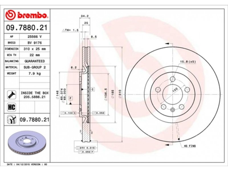 Criteries : Αριθμός οπών 5, Διάμετρος κέντρωσης [mm] 65, Ελάχιστο πάχος [mm] 22, Εξωτερική διάμετρος [mm] 310, Επεξεργασία υψηλής ανθράκωσης, Επιφάνεια με επίστρωση, Πάχος δισκόπλακας [mm] 25, Συμπληρωματικό προϊόν/ πληροφορίες 2 Με βίδες, Τύπος δισκόφρενων εσωτερικά αεριζόμενο, Υψος [mm] 34