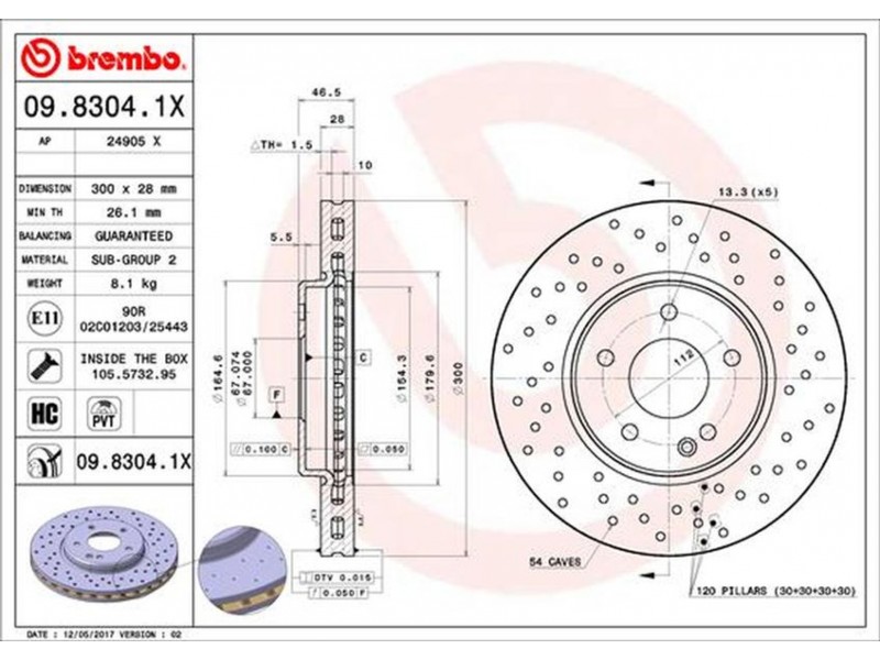 09.8304.1X ΔΙΣΚ.ΕΜΠ.ΤΡΥΠ.(XTRA) MERCEDES CLK/SLK/E (300X28) BREMBO 09.8304.1X - Δισκόπλακα
